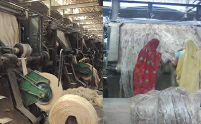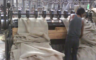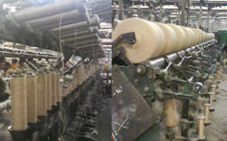 Weaving is a process of interlacement of two series of threads called "wrap" and "weft" yarns to produce the fabric of desired quality. There are separate looms for hessian and sacking in weaving section. The Hessian looms, shuttle which contents cops (weft yarn) is manually/ automatically changed. The sacking looms are equipped with eco-loader to load a cop automatically into the shuttle.