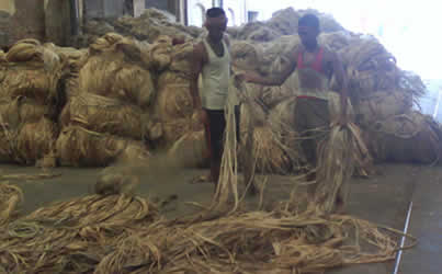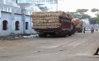 Raw jute in the form of bales are processed in our mills to produce hessian, sacking, jute yarn, bags, and other useful products. Raw jute bales from jute fields or suppliers, carried by trucks are unloaded are stacked in the jute mills gowdown. The production of jute goods from raw jute processing involves the following steps: