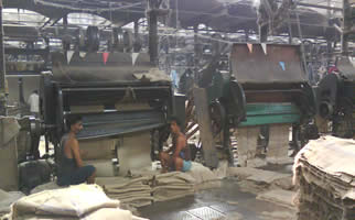 In the selection process, raw jute bales are opened to find out any defect and to remove the defective portion from the morah by experienced workers. The bales are assorted according to spin like Hessian weft, Sacking wrap, Sacking weft etc. After selection, jute are carried to softning section. In this softning process jute becomes soft and pileable and suitable for carding.